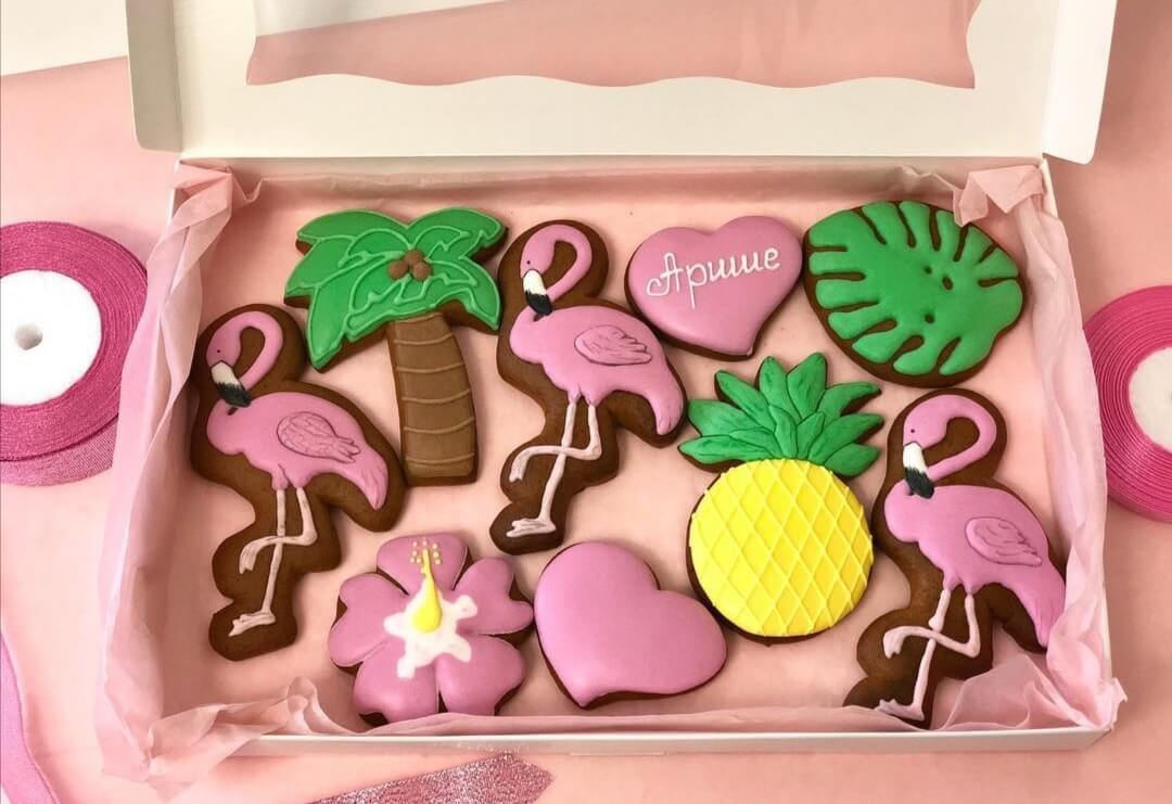 Окунитесь в атмосферу жарких тропиков с пальмами и фламинго благодаря нашим наивкуснейшим пряникам!