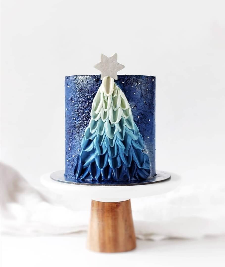 Новогодний тортик с ночной зимней елочкой в качестве декора