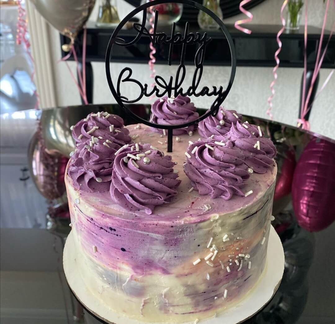 Лиловый поздравительный тортик придется по вкусу всем гостям на дне рождении!